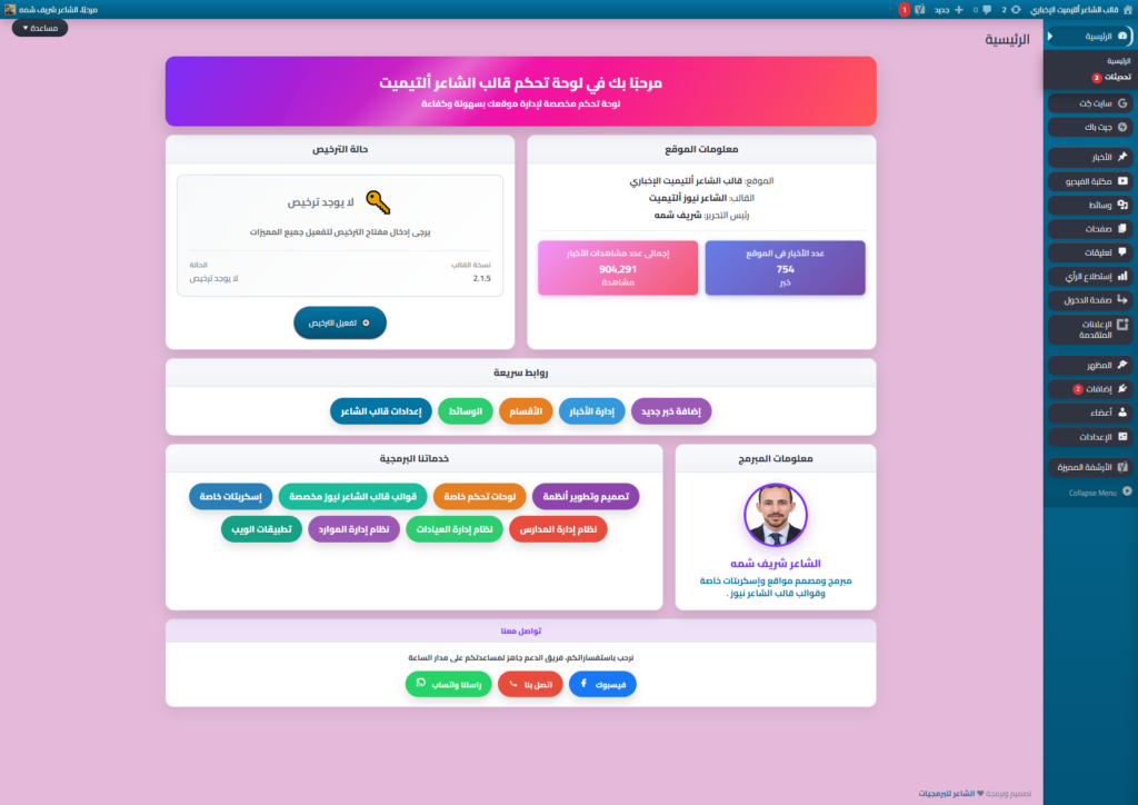 ✔️ لوحة تحكم خاصة بالقالب